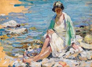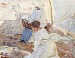 Testing The Water (+ Girl With A Green Bathing Suit, Oil On Paper Laid On Board; 2 Works)
