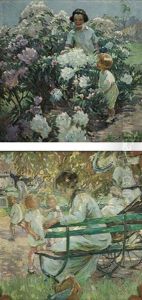 Untitled - Two Young Girls Picking Flowers