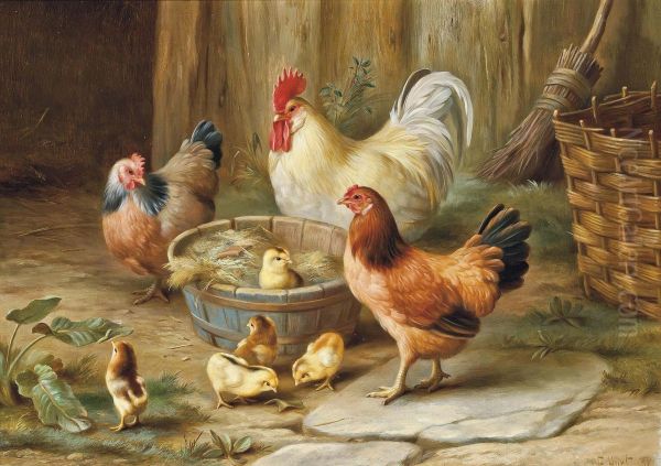Edgar Hunt’s Pecking Order is a charming and lively portrayal of barnyard fowl, capturing the rustic simplicity of rural life in late 19th-century England. Rendered in Hunt’s signature realist style, the painting exudes warmth and character, with meticulous attention to detail in the feathers, beaks, and expressive postures of the chickens. The composition is lively yet balanced, reflecting the artist’s deep appreciation for animal subjects and his skill in conveying their personalities. Hunt, a prominent British animalier painter, was celebrated for his agrarian scenes, often depicting poultry and farm animals with a mix of humor and reverence. Pecking Order stands as a fine example of his work, embodying the nostalgia for pastoral life during the Industrial Revolution while showcasing the enduring appeal of naturalistic animal portraiture in Victorian art. Though not as widely known as some contemporaries, Hunt’s contributions to genre painting remain significant for their technical precision and endearing subject matter.