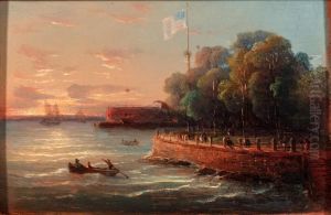 Edmund Darch Lewis's Vista De Santiago De Cuba is a captivating 19th-century landscape that immerses viewers in the lush, sun-drenched beauty of Cuba’s southeastern coast. Painted with meticulous attention to detail, the work showcases Lewis’s mastery of luminism—a style characterized by radiant light effects, serene atmospheres, and precise brushwork. The composition likely depicts Santiago de Cuba’s rolling hills, colonial architecture, and vibrant tropical flora bathed in soft, golden sunlight, evoking a sense of tranquil nostalgia. As a prominent figure of the Hudson River School’s second generation, Lewis contributed to American landscape painting’s romanticized yet documentary tradition. His works often served as visual records of distant locales, appealing to 19th-century audiences’ fascination with exoticism and exploration. Vista De Santiago De Cuba stands as a testament to his skill in blending topographical accuracy with poetic idealism, bridging realism and romanticism—a hallmark of his place in art history.