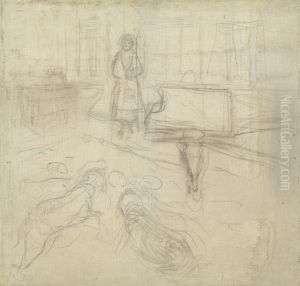 Interior with Woman, Two Dogs and Grand Piano