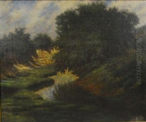 The painting Landscape With Stream by Edward Mitchell Bannister captures a serene, pastoral scene infused with soft golden light and delicate brushwork, exemplifying the artist’s mastery of tonalism—a late 19th-century American art movement emphasizing mood and atmosphere over detailed realism. Bannister, one of the few prominent African American artists of his time, drew inspiration from the Rhode Island countryside and the Barbizon School, blending natural harmony with subtle poetic sentiment. The composition features gentle rolling hills, a winding stream reflecting the sky, and clusters of trees rendered in warm earthy tones, evoking tranquility and nostalgia. Though underrecognized during his lifetime, Bannister’s works gained posthumous acclaim for their lyrical beauty and contribution to American landscape painting, bridging Romanticism and Impressionism. Today, Landscape With Stream stands as a testament to his quiet yet profound artistic vision.