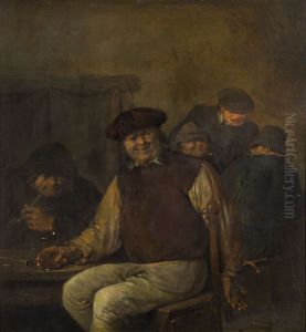 Tavern Interiors With Boors Playing Cards And Singing At A Table