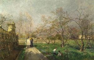 Emil Jakob Schindler was a prominent Austrian landscape painter, born on April 27, 1842, in Vienna, Austria. He is often associated with the Stimmungsimpressionismus movement, a form of mood impressionism that emphasizes the atmospheric and light conditions of landscapes. Schindler's father was a locksmith, and his family was not particularly wealthy, which made his early years in the pursuit of art somewhat challenging. Despite these obstacles, he demonstrated a keen interest and talent in painting from a young age.