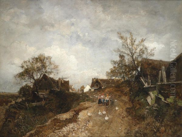 Emil Jakob Schindler’s From Haslau on the Danube (1876) is a luminous tribute to the serene beauty of Austria’s river landscapes. This oil painting embodies the essence of Austrian mood impressionism (Stimmungsimpressionismus), blending delicate light effects with poetic naturalism. Schindler captures the tranquil Danube at dusk, where soft reflections merge with the hazy sky, evoking a dreamlike stillness reminiscent of Corot or Turner. The composition balances meticulous detail—rippling water, distant trees—with atmospheric spontaneity, showcasing Schindler’s mastery in translating fleeting moments into timeless art. As a leading figure of 19th-century Austrian plein-air painting, Schindler bridged Romanticism and Impressionism, influencing successors like Klimt. This work exemplifies his legacy: a harmonic dialogue between man and nature, celebrated for its emotional depth and technical finesse.