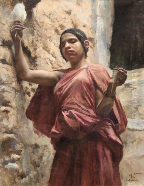 Emile Friant’s Spinner from El Kantara is a captivating Orientalist work that transports viewers to 19th-century Algeria with its intimate portrayal of daily life. Painted in 1888 during Friant’s travels in North Africa, the piece delicately balances realism and exoticism, depicting a local woman spinning wool with quiet concentration. The warm golden tones and play of light on her hands and fabric create a sense of quiet industry, while intricate details in the textiles and architecture reveal Friant’s academic precision. As a lesser-known gem of Orientalism, it offers a more grounded alternative to the movement’s typically romanticized scenes, reflecting the growing European ethnographic interest in Algerian culture post-colonization. Though not as celebrated as Friant’s naturalist portraits, this work remains significant for its transitional style between academic rigor and emerging Impressionist light studies.