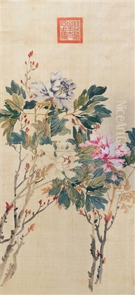 Peony by Empress Cixi Manchu-Chinese is a striking example of late Qing dynasty court artistry, embodying the opulence and refined aesthetic tastes of the Empress Dowager Cixi herself. The painting captures the peony—a symbol of wealth, nobility, and feminine grace in Chinese culture—with meticulous brushwork and rich, layered colors. Executed in a traditional Chinese ink-and-wash style yet enhanced with delicate mineral pigments, the work reflects a harmonious blend of Manchu imperial grandeur and Han Chinese literati traditions. The peony blooms with lifelike vitality, suggesting Cixi’s personal fascination with floral motifs and her assertive patronage of the arts. Historically, this piece stands as a rare artifact of female-led artistic production in a male-dominated court, offering insight into Cixi’s cultural influence. Its fusion of decorative elegance and botanical precision places it within the broader context of 19th-century Chinese revivalism, where imperial workshops sought to reinvigorate classical styles.
