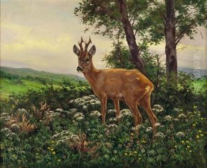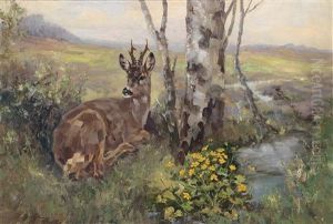 Fruhlingslandschaft Mit Asenden Rehen