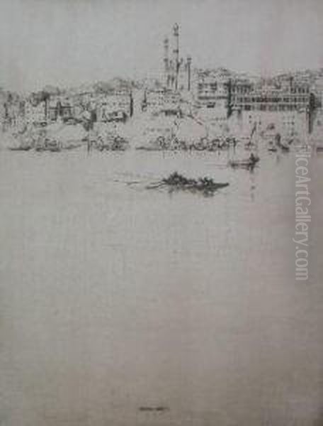 Ernest S. Lumsden’s Indian City transports viewers into a mesmerizing tableau of vibrant urban life framed by intricate architectural details. With meticulous etchings and luminous contrasts, Lumsden masterfully captures the rhythmic energy of India—crowded bazaars, ornate domes, and stoic figures woven into a harmonious yet bustling composition. Created during the early 20th century, the piece reflects Lumsden’s expertise as an etcher and printmaker, blending Western techniques with Eastern subject matter during Britain’s colonial engagement with India. His precise linearity and play of light evoke the Romantic tradition while nodding to Orientalist themes prevalent among European artists of his time. Though less celebrated than his peers, Lumsden’s works remain significant for their documentary-like detail and cross-cultural nuance, offering a bridge between ethnographic observation and artistic idealism.