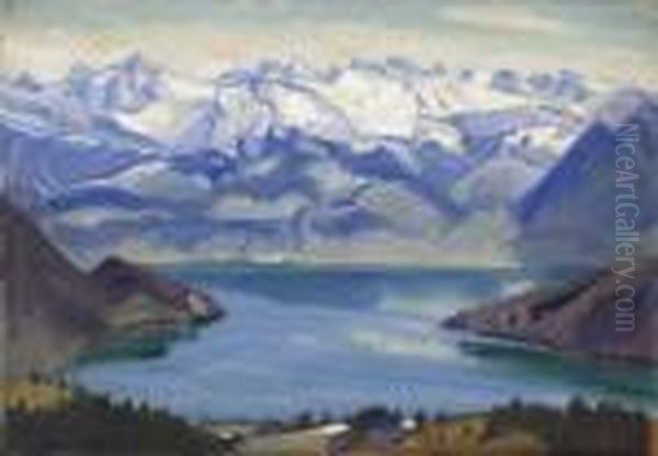 Blick Von Der Rigi Auf Den Vierwaldstättersee Und Die Schneebedeckten Berge (View from Mount Rigi onto Lake Lucerne and the Snow-Capped Mountains) by Ernst I Hodel is a breathtaking 19th-century Swiss landscape painting that captures the sublime beauty of the Alps with remarkable precision. Created during the peak of European Romanticism, Hodel’s work embodies the movement’s reverence for nature’s grandeur, combining meticulous detail with atmospheric depth. The painting’s expansive composition—featuring Lake Lucerne’s shimmering waters, rugged mountain peaks draped in snow, and delicate play of light—evokes tranquility and awe, reflecting Switzerland’s iconic terrain. Hodel, though less renowned internationally than his contemporaries Turner or Friedrich, holds significance in Swiss art history for his regional focus and technical mastery, offering viewers an immersive, almost topographic experience of the Alpine landscape.