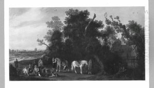 A Rocky Landscape with a Bridge over a River, Figures on a Path and on Horseback in the Foreground