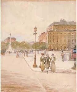 Eugène Galien-Laloue's La Place du Châtelet captures the vibrant pulse of Belle Époque Paris with remarkable precision. Painted circa late 19th to early 20th century, this gouache work epitomizes the artist’s signature "urban documentary" style—blending meticulous architectural detail with lively street scenes bathed in golden-hour light. Known for chronicling Parisian boulevards, Galien-Laloue renders the square’s iconic fountain and Théâtre du Châtelet with photographic accuracy, while animated figures—carriages, top-hatted gentlemen, and bustling crowds—infuse the composition with rhythmic energy. His post-Impressionist technique, favoring structured brushwork and a warm, muted palette, bridges realism and atmospheric impressionism. As a primary chronicler of Paris’s transformation under Haussmann, Galien-Laloue’s works like this are treasured both as artistic achievements and historical records, reflecting the era’s optimism and modernity.