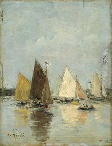 Eugène Louis Boudin’s The Return of the Boats is a luminous example of the artist’s mastery in capturing the transient effects of light and atmosphere. Painted in the late 19th century, this seascape immerses viewers in the quiet drama of fishing boats gliding back to shore under a vast, moody sky. Boudin, a precursor to Impressionism, blends loose brushwork with a keen observational eye, rendering the shimmering reflections on water and the soft haze of coastal air with remarkable sensitivity. The painting embodies his signature focus on maritime life, a subject he revisited throughout his career, earning him recognition as the "king of skies" and a pivotal influence on Monet. Its historical significance lies in bridging the tradition of French plein-air painting with the emerging Impressionist movement, making it a cherished piece in art history.