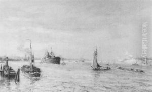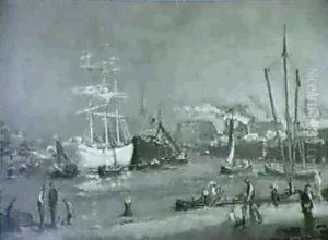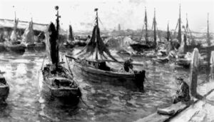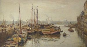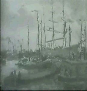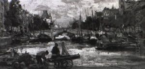 The Harbour Of Dordrecht, With The Grote Kerk Beyond
