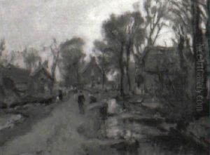 Winter Am Hollandischen Kanal Mit Wassertragerin
