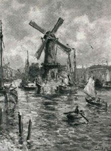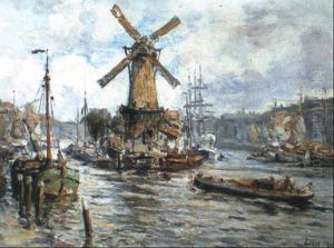 The Harbour Of Delfshaven With The Windmill De Distilleerketel