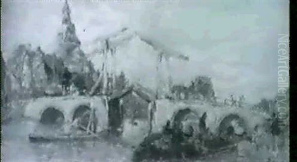 Gegenstucke: Hollandische Gracht Mit Heberbrucke Und Bootsstaffage