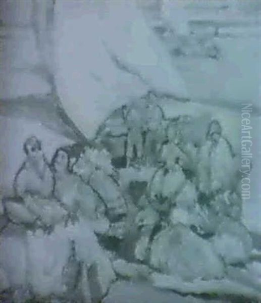 Federico Beltrán Masses' En La Playa (1922) epitomizes the allure of early 20th-century Romanticism infused with Art Deco glamour. Set against a moonlit shore, the painting depicts languid figures draped in satin, their porcelain skin glowing under ethereal blue tones—a hallmark of Beltrán's signature "nocturne" palette. The composition blends theatrical elegance with psychological tension, reflecting the artist's Spanish Baroque influences and his role as a society portraitist for European aristocracy. As a bridge between Symbolism and modern luxury aesthetics, En La Playa occupies a unique niche in art history, embodying Jazz Age decadence while foreshadowing the cinematic drama of later Hollywood style. Exhibited at Venice Biennale in 1922, it remains a touchstone for collectors of early modernist figurative works.