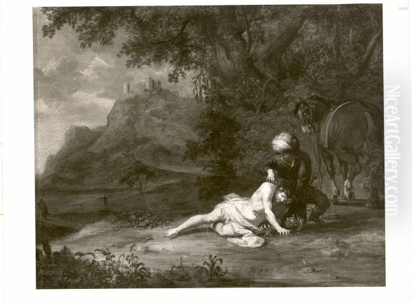 The biblical parable comes to life with arresting humanity in Ferdinand Bol’s The Good Samaritan (c. 1660s), radiating the golden warmth distinctive of Dutch Golden Age painting. Bathed in Rembrandtesque chiaroscuro—unsurprising given Bol’s tutelage under the master—the scene pulses with tactile realism: the wounded traveler’s limp body slumps against the Samaritan’s sturdy frame, their cloaks swirling in sculptural folds that catch flickering light. Against a shadowy wilderness, the meticulous rendering of textures—from the donkey’s coarse mane to the glint of metal vessels—anchors the moral drama in earthly immediacy. Though less renowned than his mentor, Bol’s work epitomizes the era’s fusion of Baroque theatricality with Protestant restraint, positioning his biblical narratives as psychological studies rather than mere dogma. This particular painting, housed in the Rijksmuseum’s collection, exemplifies Bol’s mature phase where compassionate storytelling eclipses ostentatious technique.