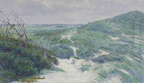 Ferdinand Hart Nibbrig’s A View of Zoutelande captures the radiant essence of the Dutch coastal village through luminous brushstrokes and a vibrant palette. Painted in the early 20th century, this work exemplifies Hart Nibbrig’s mastery of Luminism—a style marked by its emphasis on light and atmospheric effects, deeply influenced by Impressionism and Pointillism. The scene radiates warmth, with golden fields and a soft blue sky harmonizing under the glow of sunlight. Hart Nibbrig, a key figure in Dutch Post-Impressionism, bridges traditional landscape painting and modern experimentation, making this piece a significant study in the evolution of light-infused art. Its historical value lies in its ability to convey both locality and universality—rooted in Zoutelande’s serene beauty yet timeless in its celebration of light and nature.