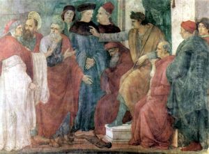 Freskenzyklus der Brancacci-Kapelle in Santa Maria del Carmine in Florenz, Szene: Hl.Petrusund Hl Paulus im Disput mit dem Magier Simon vor Nero