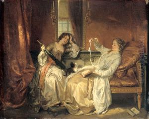 For interiors seeking aristocratic allure, Conversation Galante shines as a focal point in wood-paneled studies or velvet-draped lounges. Hang the artwork at eye level (ideally 57-60" from floor) in spaces with 10'+ ceilings to complement its likely grand scale (Willems often worked 100x150cm+). Pair with Burgundy or hunter green walls to intensify its gilded tones, or contrast with dove gray for contemporary balance. Flank with Rococo revival sconces to echo its candlelit ambiance, or position opposite French Empire mirrors to amplify luminosity. In offices, it lends prestige to executive suites when styled with Chesterfield leather sofas and brass inlaid desks—its narrative detail invites client engagement while projecting cultivated taste. For modern twist, float-frame the reproduction in matte black to highlight the figures' couture against minimalist settings.