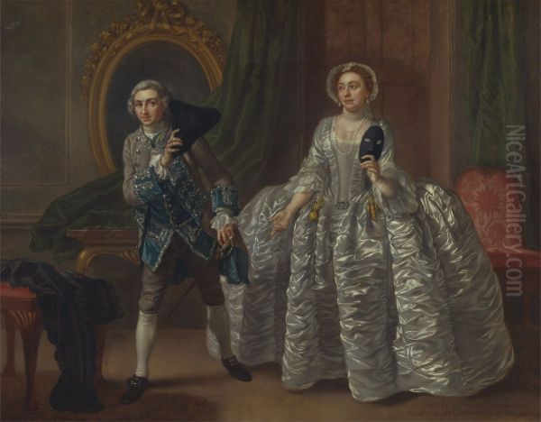 The painting David Garrick and Mrs. Pritchard in Benjamin Hoadly's "The Suspicious Husband" by Francis Hayman captures the dynamic energy of 18th-century British theater, portraying two of the era’s most celebrated actors in performance. Hayman, a leading figure in the Rococo-influenced English school, blends theatricality with refined elegance—Garrick’s animated gesture and Mrs. Pritchard’s poised expression create a striking contrast, while the rich costumes and dramatic lighting underscore the vibrancy of Georgian stagecraft. Painted around 1745, this work reflects the cultural zenith of London’s theater scene and Hayman’s role in documenting it. As both a painter and set designer, Hayman bridged visual art and performance, making this piece historically significant for its intersection of portraiture and theatrical narrative. Its composition, with its fluid brushwork and dynamic interplay of figures, places it among key examples of mid-18th-century British art, anticipating the narrative richness of later genres like Romanticism.