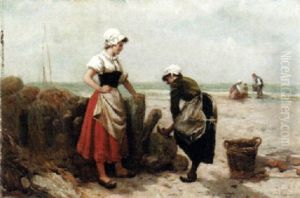 This vibrant coastal scene by Catalan artist Francisco Miralles Galup (1848-1901) captures the timeless rhythm of Mediterranean life through his signature Post-Impressionist style. Painted in the late 19th century when Miralles was part of Barcelona's modern art movement, Fisherfolk On The Beach radiates golden sunlight that dissolves into rhythmic brushstrokes depicting fishermen and boats along the waterfront. The composition masterfully balances documentary realism with atmospheric effects - weathered faces and nets rendered in earthy tones contrast with the shimmering turquoise sea. Though less internationally renowned than his contemporary Sorolla, Miralles' works like this exemplify Spain's Luminist tradition, where light becomes the protagonist. The painting's historical significance lies in its authentic portrayal of disappearing pre-industrial fishing culture, executed with a transitional technique that bridges academic detail and emerging modernist freedom.