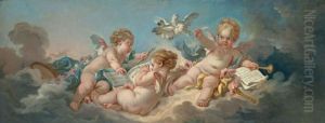 Francois Boucher’s Landschaft Mit Bauernhausern Und Wascherinnen (Landscape with Peasant Houses and Washerwomen) is a quintessential example of 18th-century Rococo art, radiating charm, softness, and pastoral elegance. The painting depicts a serene countryside scene where washerwomen go about their daily tasks beside rustic cottages nestled among lush trees, all bathed in a warm, golden light. Boucher’s delicate brushwork and pastel palette create a dreamlike atmosphere, typical of Rococo’s emphasis on beauty, leisure, and idyllic nature. As court painter to Louis XV and Mme de Pompadour, Boucher’s landscapes often served as escapist fantasies for French aristocracy, blending idealized rural life with refined artistry. This piece stands as a fine representation of his decorative sensibility and influence on later Romantic landscapes.