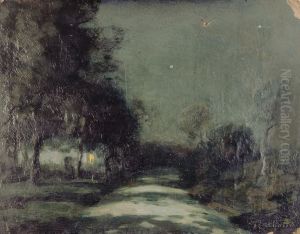 François Cachoud’s Park bij maanlicht ("Park by Moonlight") is an evocative nocturnal landscape that captures the serene yet mysterious beauty of nature under the soft glow of moonlight. Rendered in a post-impressionist style, the painting blends expressive brushwork with muted, dreamlike tones, creating an atmosphere of quiet contemplation. The scene likely reflects Cachoud’s fascination with mood and light, drawing inspiration from Symbolist and Tonalist traditions that aimed to evoke emotion over realism. Though less renowned than his contemporaries, Cachoud’s work contributes to the late 19th-century exploration of subjective experience in art, bridging impressionism and early modernism. Park bij maanlicht stands out for its poetic sensibility, positioning Cachoud as a subtle yet significant voice in European landscape painting.