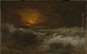 Frank Weston Benson's Rainy Day (ca. 1905) captures a serene yet evocative moment bathed in cool, diffused light, embodying the quiet beauty of Impressionism in America. The painting depicts Benson’s daughters elegantly dressed, strolling under umbrellas on a reflective wet pathway—likely inspired by his family’s retreat in New Castle, Maine. Masterfully blending loose brushwork with luminous color harmonies, Benson bridges European Impressionist techniques with distinctly American themes. As a key member of the "Ten American Painters" group, his work played a pivotal role in popularizing Impressionism stateside, with Rainy Day exemplifying his ability to transform mundane leisure into poetic introspection. Its soft blues, delicate grays, and subtle interplay of light on damp surfaces make it a standout piece reflecting early 20th-century genteel domesticity.
