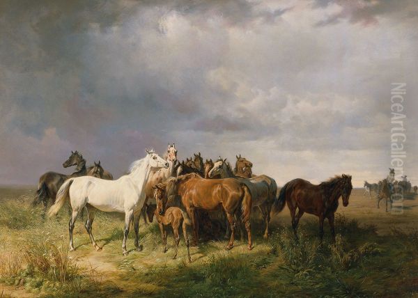 Bring the timeless beauty of Franz Adam's Pferde auf der Puszta into your home with a handmade oil painting reproduction. Carefully recreated on canvas by skilled artists using traditional techniques, this piece captures the delicate brushwork, subtle light, and vibrant color of the original masterpiece. With museum-level quality and rich texture, it brings elegance and artistic depth to any space. Enjoy free shipping and make this masterpiece a part of your personal collection.
