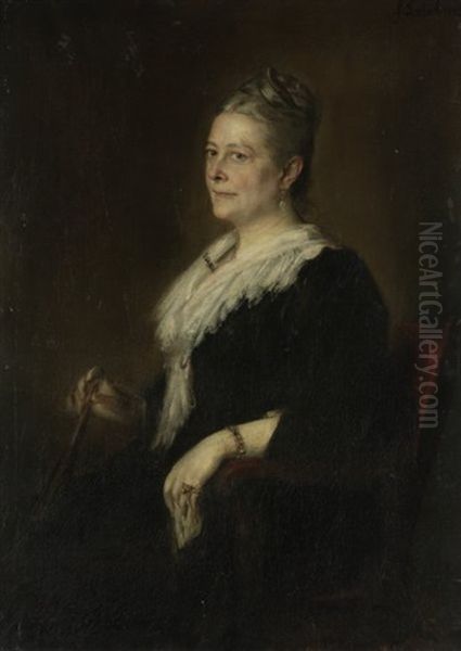 Lenbach’s Grosses Damenportrait (Large Portrait of a Lady) exudes aristocratic elegance and psychological depth, capturing the essence of 19th-century high society portraiture. The sitter, draped in sumptuous fabrics with delicate lace details, gazes thoughtfully beyond the frame, her refined posture and subtle expression revealing both confidence and introspection. Painted by Franz von Lenbach—nicknamed the "Malerfürst" (Painter Prince) for his mastery of portraiture—this work exemplifies his signature style: rich, velvety brushstrokes, dramatic chiaroscuro lighting reminiscent of Old Masters like Rembrandt, and an intimate yet dignified portrayal of his subjects. A prominent figure of the Munich School, Lenbach was renowned for his portraits of Europe’s elite, including Bismarck and Wagner. Grosses Damenportrait reflects his ability to blend realism with grandeur, cementing his legacy as a bridge between traditional academic art and modern portraiture. Its historical significance lies in its embodiment of Gilded Age opulence and the artist’s role in shaping aristocratic identity through art.