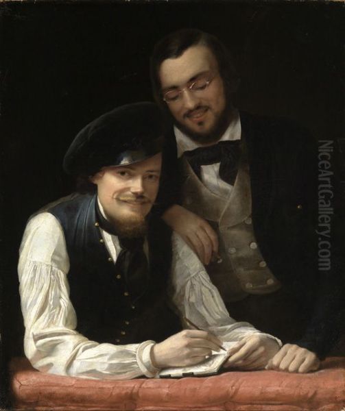 Bring the timeless beauty of Franz Xavier Winterhalter's Selbstbildnis des Kunstlers mit Bruder into your home with a handmade oil painting reproduction. Carefully recreated on canvas by skilled artists using traditional techniques, this piece captures the delicate brushwork, subtle light, and vibrant color of the original masterpiece. With museum-level quality and rich texture, it brings elegance and artistic depth to any space. Enjoy free shipping and make this masterpiece a part of your personal collection.