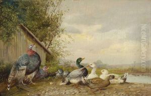 Franz Xavier Von Pausinger’s Rotwild Am Ufer Eines Sees (Red Deer by a Lakeshore) is a mesmerizing example of 19th-century European wildlife painting, capturing a serene moment of nature untouched by human intervention. The composition depicts a group of red deer grazing peacefully along the tranquil shore of a lake, framed by lush greenery and soft reflections on the water’s surface. Pausinger’s meticulous realism and keen observational skills shine through in the lifelike rendering of the deer’s musculature and fur, while the subdued, earthy palette creates a harmonious, almost melancholic atmosphere. As a late Romanticist, Pausinger belonged to a tradition that idealized nature’s purity, but his precision also aligned with the emerging Naturalist movement. Though less widely renowned than his contemporaries like Carl Rungius, his works remain valued for their detailed portrayal of wildlife, contributing to the conservationist sentiment of his era. This painting exemplifies his ability to blend scientific accuracy with poetic tranquility, making it a significant piece in the lineage of European animalier art.