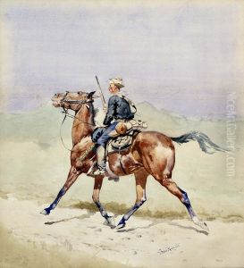 Dismounted, The Fourth Trooper Moving the Led Horses