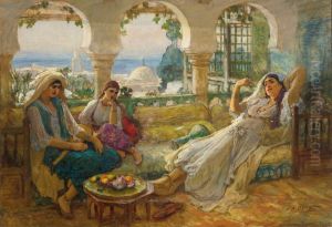 Frederick Arthur Bridgman’s "A Burial Ground On The Nile" transports viewers to the solemn yet mystical banks of ancient Egypt. Painted in the late 19th century during the Orientalist movement, the work captures a quiet, sun-drenched scene of a riverside necropolis, where towering palms cast long shadows over time-worn tombs. Bridgman, an American artist deeply influenced by Jean-Léon Gérôme, masterfully blends archaeological precision with atmospheric luminosity—soft ochres, muted blues, and golden light evoke both the heat of the desert and the stillness of eternity. As a key figure in Orientalism, his meticulous detailing and romanticized exoticism reflect Western fascination with the Near East, while the painting’s melancholic beauty secures its place as a significant example of 19th-century cross-cultural artistic dialogue.