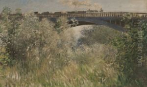Childe Hassam’s The Seine at Chatou (1888) captures the tranquil beauty of the French countryside with luminous brushstrokes and a vibrant palette, embodying the essence of American Impressionism. Painted during Hassam’s stay in France, the work showcases his mastery of light and atmosphere, portraying the Seine River shimmering under dappled sunlight, with sailboats dotting the water and lush foliage framing the scene. The loose, expressive brushwork and interplay of colors reflect his adoption of Impressionist techniques, while the compositional harmony reveals his academic training. As a leading figure in the American Impressionist movement, Hassam bridged European influences with a distinctly American sensibility, making this piece a significant example of late 19th-century transatlantic artistic exchange. Its idyllic yet dynamic quality continues to resonate, offering a glimpse into Hassam’s transformative period abroad.
