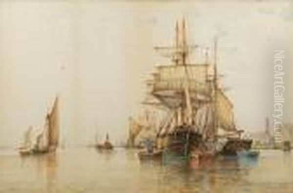 On the Thames by Frederick James Aldridge is a captivating 19th-century riverscape that embodies the serene charm of Victorian-era England. This oil painting, executed in Aldridge’s characteristic realistic yet atmospheric style, portrays a tranquil moment along the Thames, with softly rippling waters reflecting muted skies and graceful boats drifting lazily. Known for his maritime and riverine subjects, Aldridge masterfully balances detail with mood, embedding subtle luminosity in the water and sky—a hallmark of British Impressionist influences. Though less formally radical than his French contemporaries, his work holds significance in British art history for documenting the Thames' everyday beauty during industrialization, bridging Romanticism and early Impressionism. The painting’s quiet lyricism invites viewers into a timeless, meditative space.
