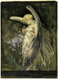 Frederick Stuart Church’s Fairy and the Swans (1888) is a dreamlike testament to the late 19th-century American fascination with fantasy and nature. The painting depicts a delicate fairy perched gracefully on the back of a swan, surrounded by serene waters and soft, dappled light. Church’s meticulous attention to detail and ethereal brushwork reflect the influence of Romanticism and the Aesthetic Movement, blending realism with poetic imagination. Rich in symbolism, the swans represent purity and transformation, while the fairy embodies enchantment—a theme resonant with the era’s escapist tendencies. Though less renowned than his contemporaries like Winslow Homer, Church’s whimsical yet refined style earned him acclaim in illustrated publications and private collections, cementing his niche in Gilded Age art. The work’s lyrical quality and technical finesse make it a charming example of how American artists reinterpreted European fantasy traditions.