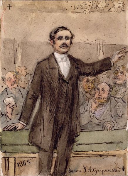 Friherre Johan August Gripenstedt, statsrad. Skissbok "Nagra af mina samtida bekanta"