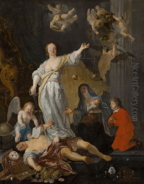 Gabriel Metsu’s The Triumph of Justice (1650s) captivates with its delicate yet dynamic portrayal of classical allegory infused with Dutch Golden Age realism. The painting depicts Justice—often personified as a serene woman holding scales and a sword—surrounded by harmonious light and meticulous details, showcasing Metsu’s masterful balance between idealism and everyday charm. Created during Amsterdam’s flourishing artistic period, the work reflects Baroque theatricality softened by genre painting intimacy—a hallmark of Metsu’s oeuvre bridging Vermeer’s quiet elegance and Rembrandt’s dramatic depth. Though Metsu is renowned for domestic scenes, this allegorical piece underscores his versatility, positioning it as a fascinating anomaly within Dutch Baroque’s secular canon. Its restrained palette of ivory, gold, and earthy tones radiates solemnity, while the compositional gravitas elevates it beyond decorative art into a nuanced moral commentary fit for civic or scholarly spaces historically.