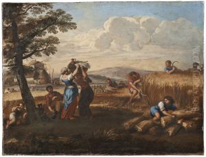 Gaspard Dughet’s Pastoral Landscape with Figure is a serene yet dynamic masterpiece, embodying the romantic grandeur of 17th-century Italian landscapes. The painting transports viewers to an idyllic countryside, where towering trees frame a sunlit valley, and a distant figure blends seamlessly into the harmonious natural scene. Dughet, a pupil of Nicolas Poussin, infused his works with classical balance and theatrical lighting, making this piece a quintessential example of the paysage composé (composed landscape) tradition. Celebrated for its poetic idealization of nature, the painting reflects the Baroque era’s fascination with pastoral escapism while showcasing Dughet’s mastery of atmosphere—misty horizons and delicately rendered foliage heighten the sense of depth. Though less famed than his mentor, Dughet significantly influenced later landscape painters like Corot, cementing his legacy as a bridge between classical rigor and the emerging Romantic sensibility.