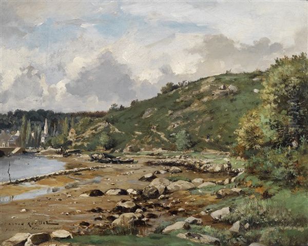 Gaston-Marie-Anatole Roullet’s Port De Pont-Aven is a vibrant and atmospheric depiction of the bustling harbor in Pont-Aven, Brittany, capturing the essence of 19th-century French maritime life. Roullet, a student of the renowned Orientalist painter Jean-Léon Gérôme, expertly blends realism with a touch of romanticism, infusing the scene with dynamic brushwork and a rich, luminous palette. The painting’s composition draws the viewer into the lively port, with fishing boats bobbing on shimmering waters, fishermen at work, and the quaint village forming a picturesque backdrop. Pont-Aven, already famous as an artist colony, is rendered with both authenticity and artistic flair, reflecting Roullet’s keen observational skills and his ability to evoke a sense of place. Though less celebrated than some of his contemporaries, Roullet’s works, including this one, offer valuable insights into the regionalist and maritime traditions of French art, bridging the gap between academic precision and the emerging Impressionist movement.
