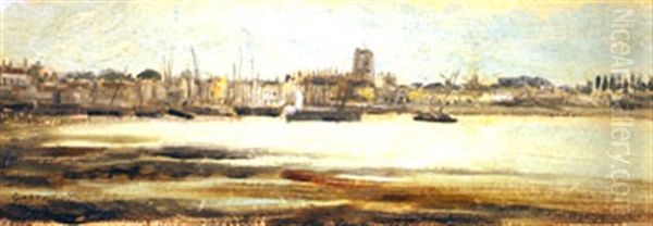 Gaston-Marie-Anatole Roullet's Port En Normandie is a captivating example of 19th-century French marine painting, radiating the serene yet dynamic energy of Normandy’s coastal life. The artwork masterfully captures the play of light on water, with a tranquil harbor scene where boats gently sway and the horizon melts into a soft, misty sky. Roullet, a student of the renowned marine artist Louis-Ambroise Garneray, excelled in realistic detail while infusing his works with a romantic sensibility. This piece reflects the Barbizon School’s influence, blending naturalism with subtle atmospheric effects, a hallmark of French landscape painting during the period. Though less famous than contemporaries like Monet, Roullet’s works remain valued for their technical precision and evocative portrayal of maritime life, offering a glimpse into the quiet drama of 19th-century harbors.