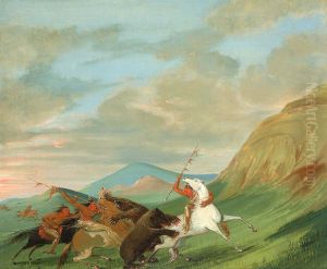 Buffalo Hunt, Approaching A Ravine, Pl. 11, From North American Indian