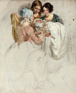 A Girl and Two Women, Standing and Holding a Baby (study for 'The Covenanters' Baptism')