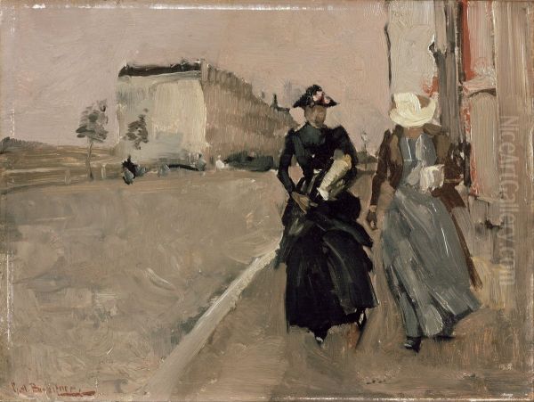 George Hendrik Breitner's Gust of Wind captures the raw energy of urban life in late 19th-century Amsterdam with striking immediacy. The painting depicts three women walking against a strong wind, their garments billowing dramatically as they brace themselves—an almost cinematic moment frozen in oil. Breitner, a key figure in Dutch Impressionism, employed loose brushstrokes and muted tones typical of the Amsterdam Impressionists, yet his focus on working-class subjects and fleeting light effects bridged realism and modernism. Painted circa 1890–1900 during his fascination with street scenes, this work exemplifies his revolutionary approach to portraying movement and atmosphere. Unlike his contemporaries Monet or Degas, Breitner infused everyday urban struggles with monumental dignity, cementing his legacy as a pioneer of social realism within Impressionism. The painting’s dynamic composition and emotional authenticity make it a pivotal study in how 19th-century artists translated modern life’s transience onto canvas.