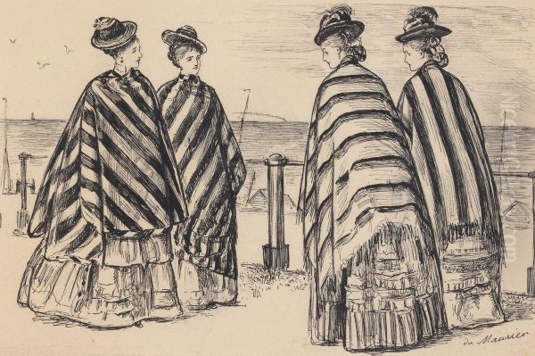 George du Maurier’s Women and their Garments Artistically Described is a captivating example of late 19th-century satirical and illustrative art, blending elegance with subtle wit. Created during the height of du Maurier’s career as a cartoonist for Punch magazine, this piece exemplifies his refined line work and keen eye for social commentary. The artwork portrays women in elaborate garments, rendered with delicate drapery and meticulous detail, reflecting both the fashion and societal norms of the Victorian era. Du Maurier’s style, rooted in academic draftsmanship yet infused with a playful, narrative charm, bridges the gap between fine art and illustration. Historically significant, the piece offers insight into gender roles and aesthetics of the period, while its accessibility and decorative appeal have made it a enduring favorite among collectors of Victorian graphic arts.