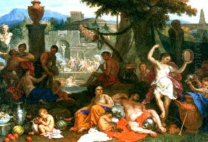 Gerard Hoet's Bacchic Festival (Bachantenfest) is a vibrant celebration of mythological revelry, depicting nymphs and satyrs immersed in joyous festivities honoring Bacchus, the Roman god of wine. Painted around the early 18th century, the work exemplifies the Dutch Baroque fascination with classical themes, blending dynamic composition with lush, naturalistic details. Hoet's mastery lies in his fluid brushwork and theatrical lighting, which infuse the scene with movement—glistening drapery, dancing figures, and dappled foliage evoke a sense of ecstatic abandon. Historically, the painting reflects Northern European artists' reinterpretation of Italian Renaissance motifs, bridging Rubens' exuberance with emerging Rococo elegance. Its significance extends beyond aesthetic appeal, offering insight into Enlightenment-era dialogues on hedonism versus restraint, making it a compelling study for both art historians and admirers of allegorical storytelling.